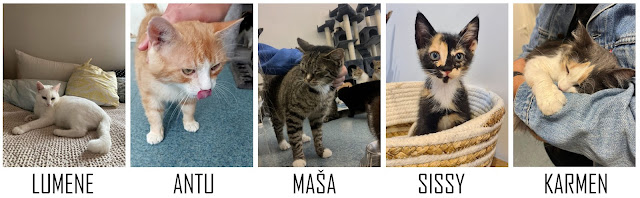 Lumene suur soov leida päris oma kodu ja olla armastatud sai täna täidetud! Lõpuks ometi saab Lumene rahulikus ja stressivabas keskonnas lõputult nautida oma inimese tähelepanu ning ainult kõige paremaid konserve. ANTU - Järjekordne paikiisu on leidnud oma inimesed ja mis veel parem - OMA KODU! Antu kolis Pesaleidjasse Viljandist, veetis meiega peaaegu terve suve. Häälekas noormees, kes lausa nõudis konservi. Uues kodus on meie armas punane Antu ainuke kiisu ja saab kogu tähelepanu omale. Uus perenaine võttis 2 nädalat puhkust, et kiisu ei peaks uues kodus üksi olema! Imearmas paikiisu Maša on oma kodu oodanud juba 3 pikka aastat. Nüüdseks on see mure aga lahendatud, sest enne kui ilmad hakkavad jälle külmemaks kiskuma otsustas Maša kõik oma trumbid mängu panna ja tulevase perekonna ära võluda. Kodus ootab teda ka teine vurruline seltsiline. SISSY - Pixie pesakonna 9nädalane kiisupoeg, kes on esimene kojumineja. Pesakond sündis hoiukodus ja harjunud lastega. Päris kodus ootasid teda ka ees lapsed ning 5aastane steriliseeritud kass. Vaikselt harjub uue koduga, juba esimesed ampsud on söönud. Karmen reisis täitsa oma koju Viljandisse. Sõit on küll pikk, aga see on igati seda väärt. Karmen võlus tulevase pere ära oma rahulikkuse ja pailembusega. Kohe tutvudes oli Karmenile selge, et just see ongi TEMA ÕIGE PERE ja sinna sülle tuttu ta jäigi.